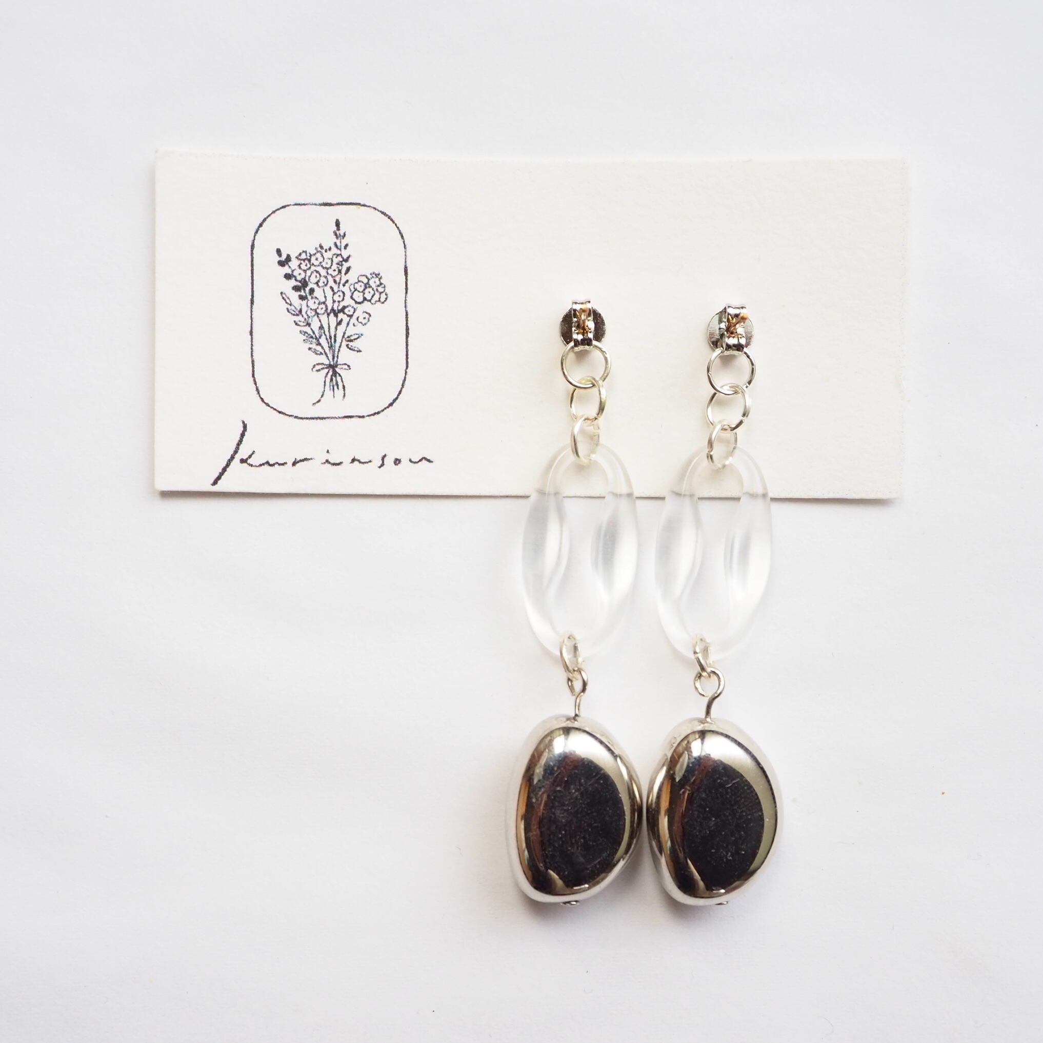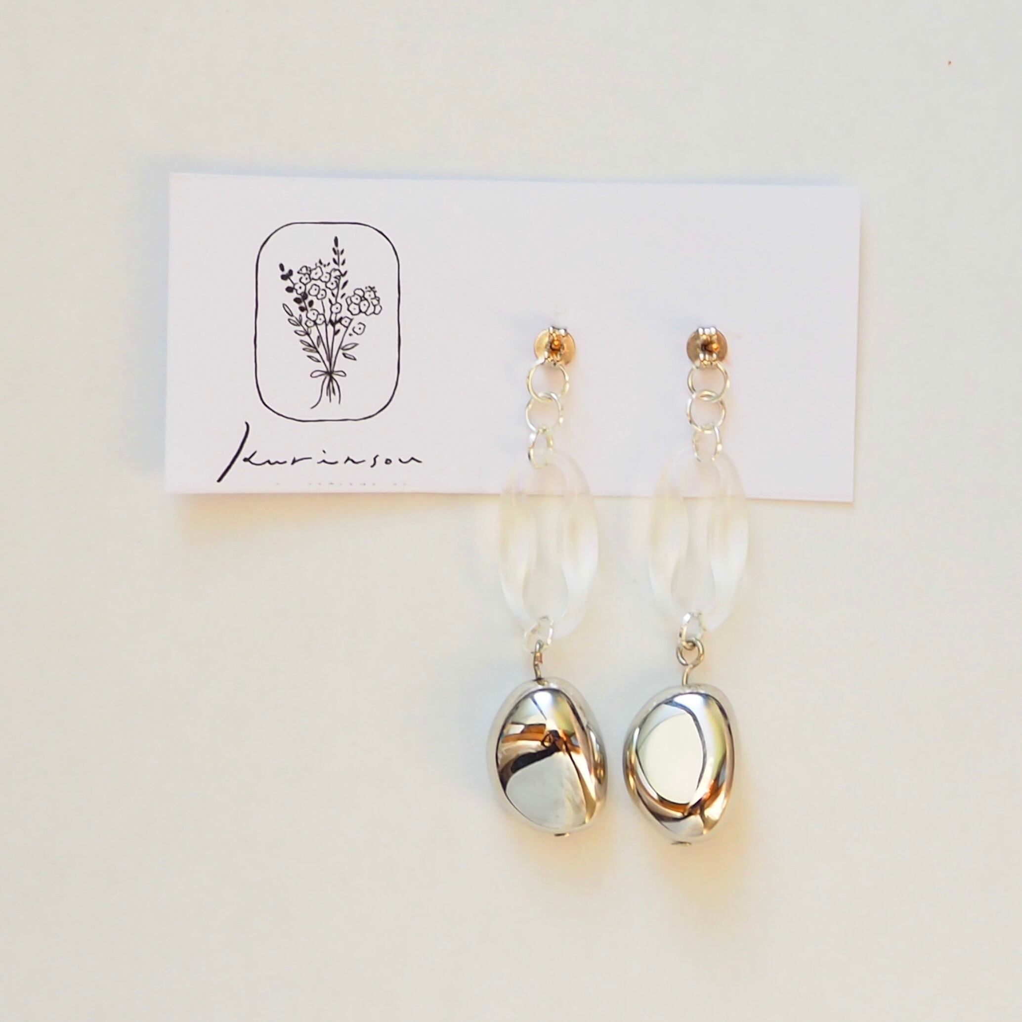 豆型のシルバーとクリアのフープ