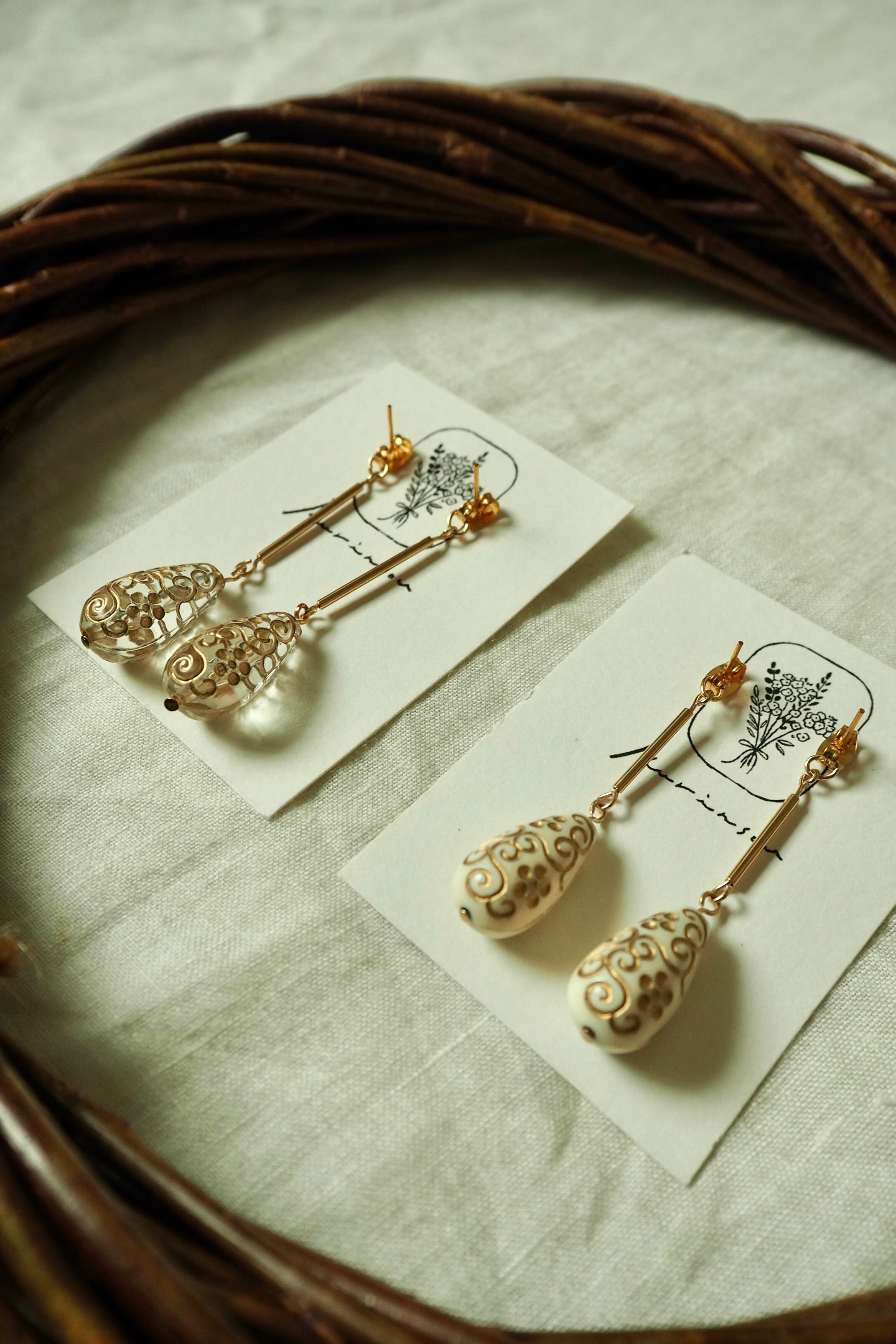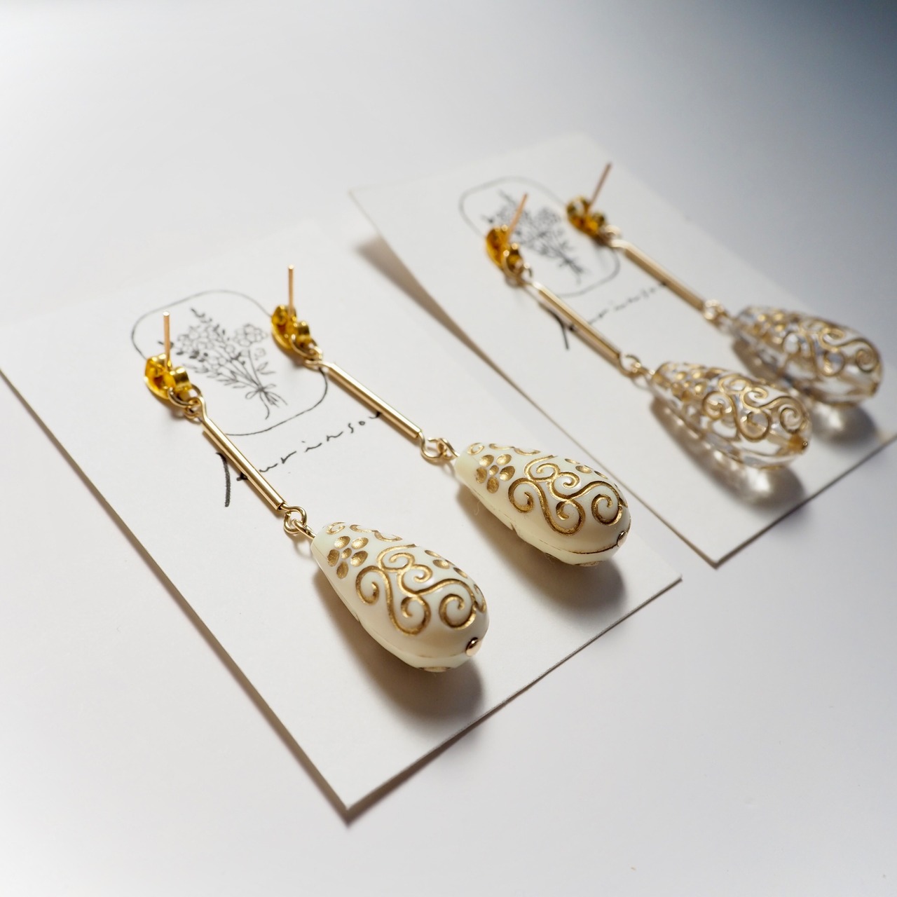 どちらもよく揺れて、ゴールドやクリア、ホワイトなアクセサリーにぴったりです◎