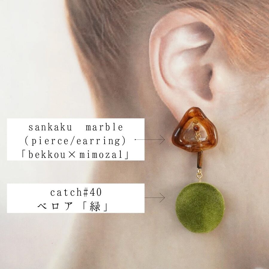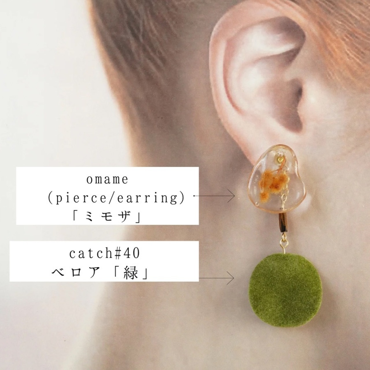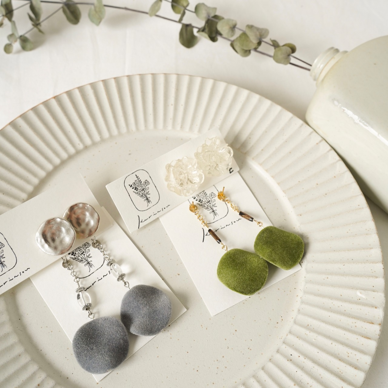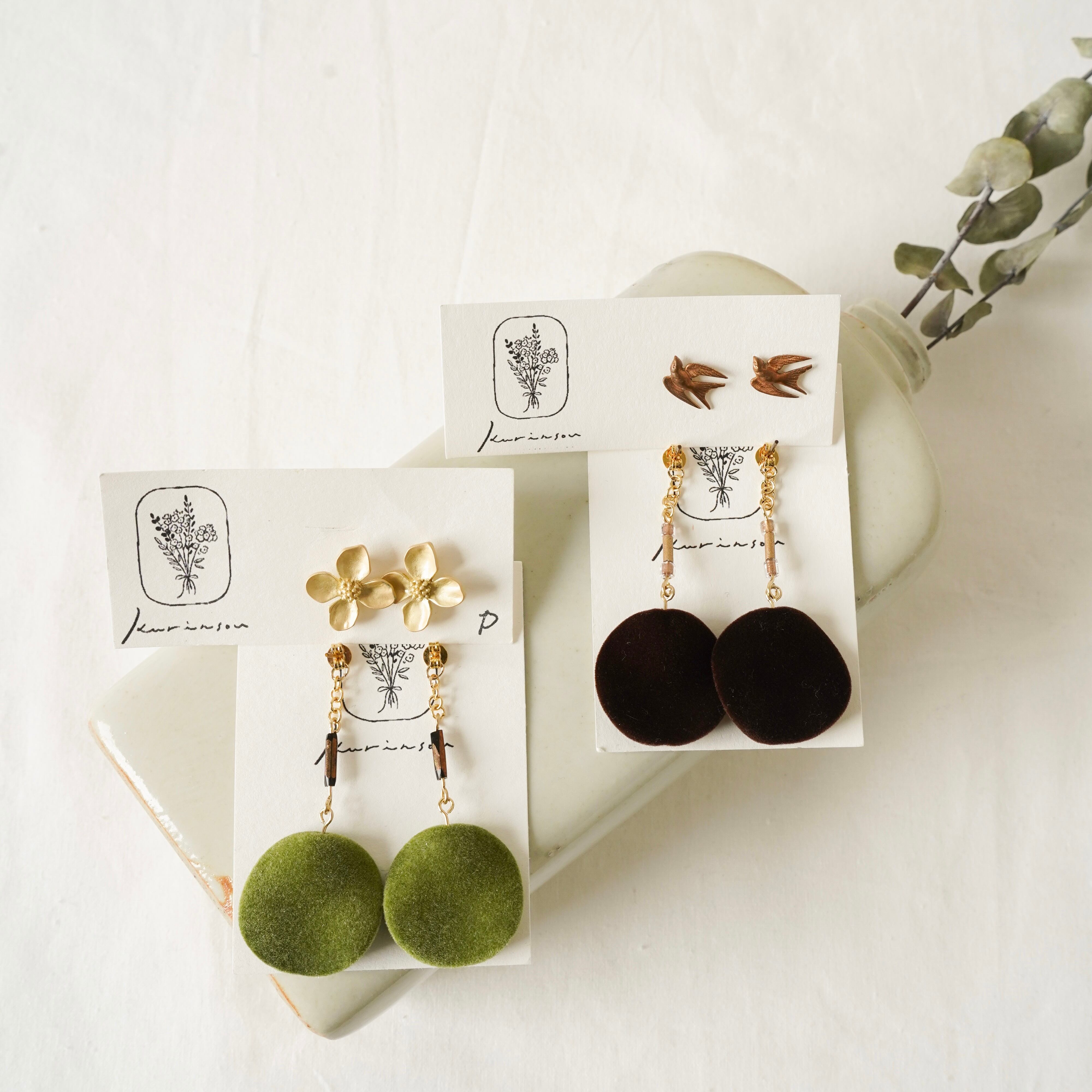 「緑」は春にぴったりな色合いで、耳元をパッと明るく華やかに。緑の中でもナチュラルな色合いなので、いろいろな服装と合わせやすいアクセサリーです◎
